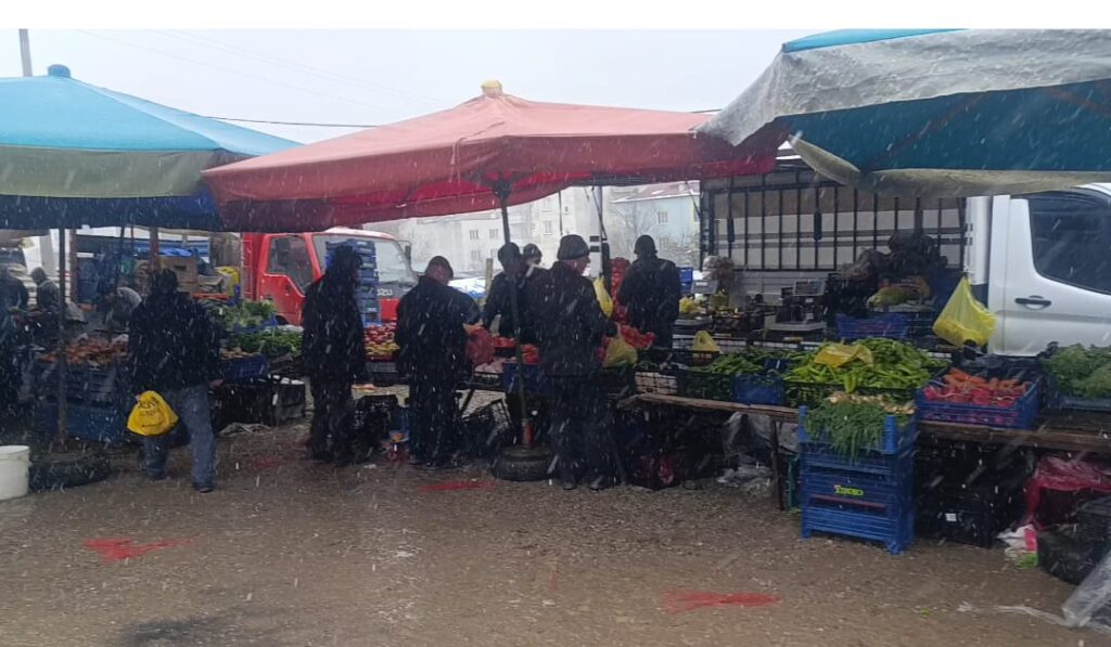 Samsun’un yüksek kesimlerinde etkili olan kar yağışı, Asarcık ilçesinde pazarın kurulmasına engel olmadı. Soğuk havaya rağmen tezgahlarını açan esnaf, taze sebze, meyve ve balık çeşitleriyle vatandaşlara hizmet vermeye devam etti.