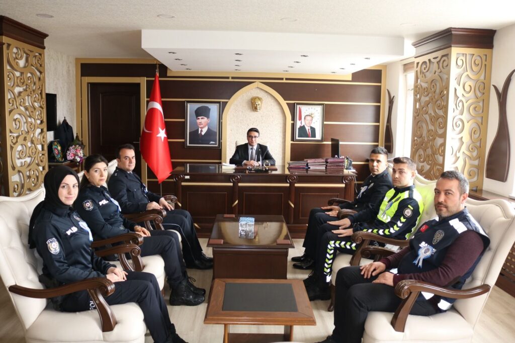 Türk Polis Teşkilatı’nın 181. kuruluş yıl dönümü ve 10 Nisan Polis Haftası kapsamında, Asarcık İlçe Emniyet Müdürü Turgay Başaran ve heyeti Kaymakam Ahmet Tayyip Korkmaz’ı makamında ziyaret etti.