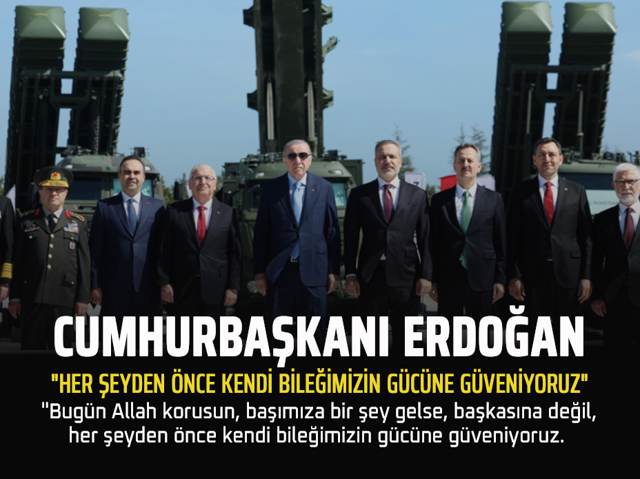 “Bugün etrafımızda füzeler ve dronlar uçuşurken biz kendimizi güvende hissediyor, gece yastığa başımızı gönül huzuruyla koyabiliyoruz” diyen Cumhurbaşkanı Erdoğan, şu değerlendirmelerde bulundu: “Bugün Allah korusun, başımıza bir şey gelse, başkasına değil, her şeyden önce kendi bileğimizin gücüne güveniyoruz. Bunları sadece biz değil, rakiplerimiz ve hasımlarımız da gayet iyi biliyor. Ama şurası da bir gerçek ki savunma sanayisinde önemi bugünlerde daha iyi anlaşılan gurur verici seviyelere asla kolay gelmedik. Sınandık, oyalandık, yarı yolda bırakıldık, engellendik, tehdit edildik. Hiç hak etmediğimiz kısıtlamalara maruz kaldık ama biz bunların hiçbirine boyun eğmedik.”